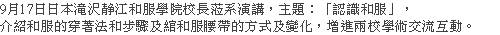 9月20日舉辦中秋晚會「卡拉肉汁」、「96學年度媒體傳達設計學系系服徵件競賽」,並由日媒三乙陳思維同學榮獲優勝。 |