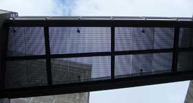 現場勘查各空橋橋面視覺穿透情形,除正下方及左右兩側向上仰視,有視覺穿透情形(約30%-40%);前後兩側稍有角度視覺即被隔柵遮住,無法透視。